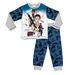 Como se puede apreciar en la imagen, se trata de un pijama de dos piezas en el que predominan los colores azul y gris, con una imponente imagen en la parte superior y un estampado en egro y azul en las mangas y en los pantalones. Los protagonistas de la pelicula que aparecen representados son: Rey, Finn, BB8 y Chewbacca.
