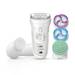 Diseñada y fabricada por Braun, esta depiladora nos ofrece un cuidado de la piel y cepillo limpiador facial adicional, capaz de eliminar vello 4 veces más corto que al depilarse con cera. El set incluye almohadilla de masaje profundo que ayuda a mejorar el aspecto de la piel y dos cepillos corporales que exfolian y ayudan a reducir el vello enquistado. No sólo nos va a servir para cortar el vello sino que también para exfoliar la cara. Una de las ventajas de esta depiladora es que puede usarse en la ducha, tal y como podemos ver en la siguiente imagen: