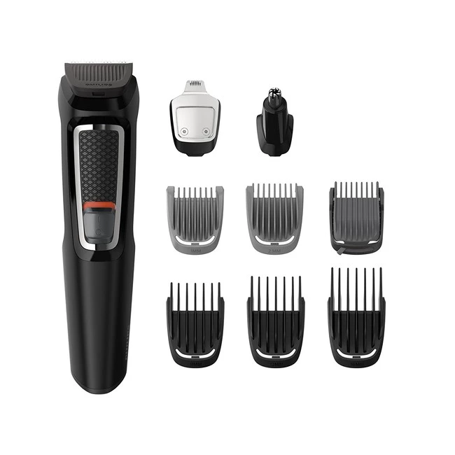 Esta recortadora Philips incorpora cuchillas autoafilables de acero inoxidable, que se frotan ligeramente entre sí, afilándose mientras cortan. Podemos aguantar hasta 3 años sin necesidad de afilarlas. Cuenta con hasta 60 minutos de autonomía, lo que nos permite hacer varios usos sin necesidad de recarga. El set de 8 accesorios incluye 6 peines-guía para recortar la cara y el cabello, entre los que tenemos 2 peines-guía para barba de 2 días (1 y 2 mm), 1 peine-guía para barba ajustable (3-7 mm) y 3 peines-guía para el cabello (9, 12 y 16 mm). También tenemos un perfilador para perillas o barbas y un accesorio para eliminar el vello de nariz y orejas. Tenemos más info e imágenes en la web oficial de Philips.
