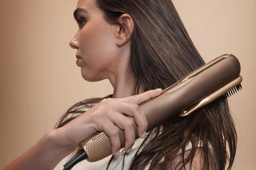 Optimiza tu tiempo gracias a esta plancha con secador que te peina el cabello mientras lo seca cuando sales de la ducha. Su potente flujo de aire de 12,6 m/s, 4 temperaturas y dos velocidades ajustables permite secar cada mechón sin perder el brillo ni quemarlo por el exceso de calor retirando adecuada mente la humedad que no afecta a la plancha.