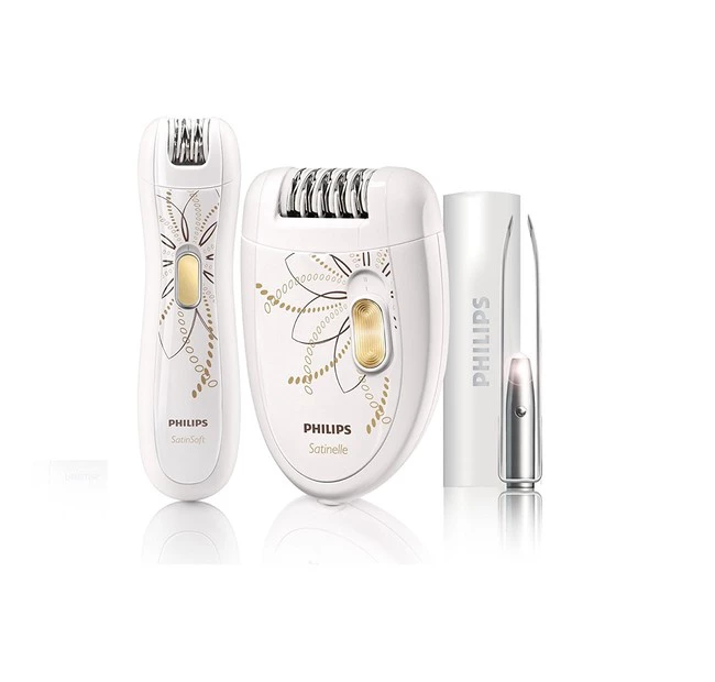 Esta set depilador de Philips cuenta con tres accesorios: depiladora, depiladora de precisión para zonas sensibles y pinzas con luz de regalo. La depiladora principal cuenta con mango ergonómico y cabezal depilador lavable, mientras que la depiladora de precisión es ideal para zonas sensibles y para viajes. En la web oficial de Philips podemos ver más info e imágenes. El set se complementa con unas pinzas con luz incorporada como las que podemos ver en la siguiente imagen:
