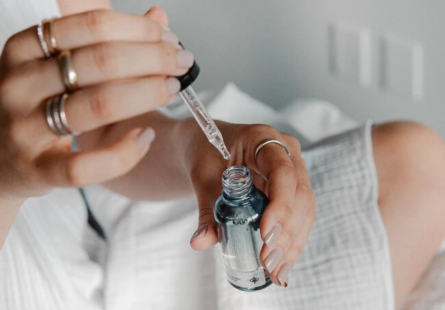 - Echar tres o cuatro gotas en la piel, sin que el gotero toque el rostro, y esparcirlo