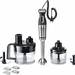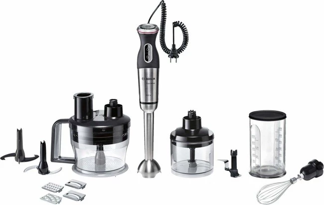Este completo set de Bosch incluye una batidora de mano de 800 W con regulador electrónico de velocidad, cúpula con cuatro cuchillas y un set completo de accesorios que incluye picador universal con cuchillas mezcladora, amasadora y picahielo, varilla batidora y vaso mezclador graduado. Su precio es de 84 euros.