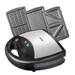 Esta sandwichera destaca por su versatilidad: podemos cambiar las placas según nuestras necesidades de cada momento, permitiéndonos hacer gofres, sandwiches o por el contrario, colocar una placa de grill para hacer carne, verduras o pescado a la plancha. Además, el hecho de poder sacar las placas nos facilita la limpieza, pudiéndolas meter incluso en el lavavajillas. Las medidas de las placas son de 22,5 cm x 13 cm, por lo que tenemos un grill que nos puede ser suficiente para dos personas. en esta imagen podemos ver con que sencillez podemos sacar las placas de la sandwichera: