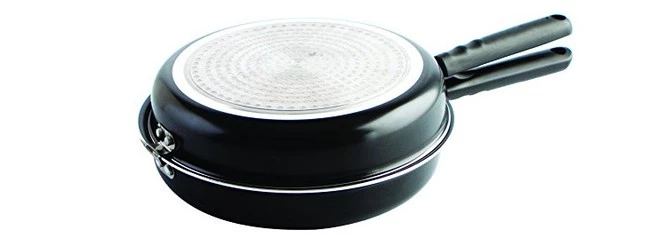 Por menos de 20 euros puedes acabar con tus penas al girar la tortilla gracias a esta doble sartén fabricada en aluminio con revestimiento antiahderente. Vienen con un cierre de seguridad que debemos usar al hacer el giro pero que puede quitarse. El hecho de que sea doble no impide que soltemos las sartenes y las usemos individualmente, aunque piénsalo bien: si no usamos esta sartén para cocinar otras cosas la capa antiahderente durará mucho más y eso es clave para poder hacer buenas tortillas, pues en cuanto estas empiezan a agarrarse, comienza el desastre.