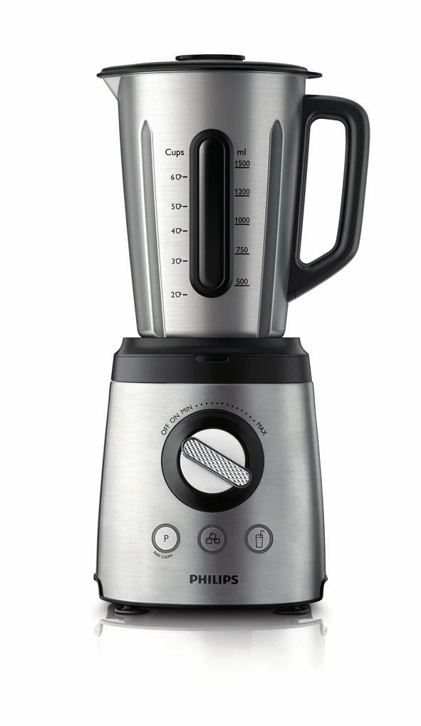 Esta batidora de Philips con cuchilla de 6 hojas ProBlend y motor de 800 W puede con todo tipo de trabajos, desde sencillas frutas y verduras hasta picar hielo. Su función de varias velocidades nos permite batir, picar y cortar con la consistencia final que deseemos. Cuenta con una cuchilla descentrada en la jarra que crea turbulencias y mezcla los ingredientes de forma eficaz. El set incluye una espátula que nos permite remover con seguridad mientras se baten los ingredientes. tenemos mucha más info e imágenes en la web oficial de Philips.