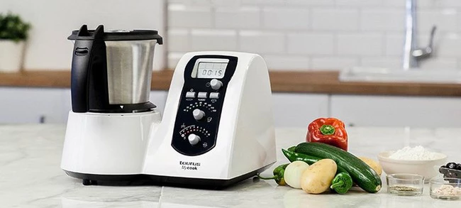 Este robot de cocina promete elaborar toda clase de platos, por lo que incorpora funciones que reproducen las técnicas necesarias para cocinar: muele, pulveriza, ralla, pica, tritura, trocea, monta, amasa, sofríe, cuece, pesa e incluso emulsiona.