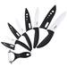 La imagen de arriba es muy descriptiva acerca de lo que incluye este set: son cuatro cuchillos cerámicos de diferentes medidas con sus respectivas fundas y un pelador de fruta.