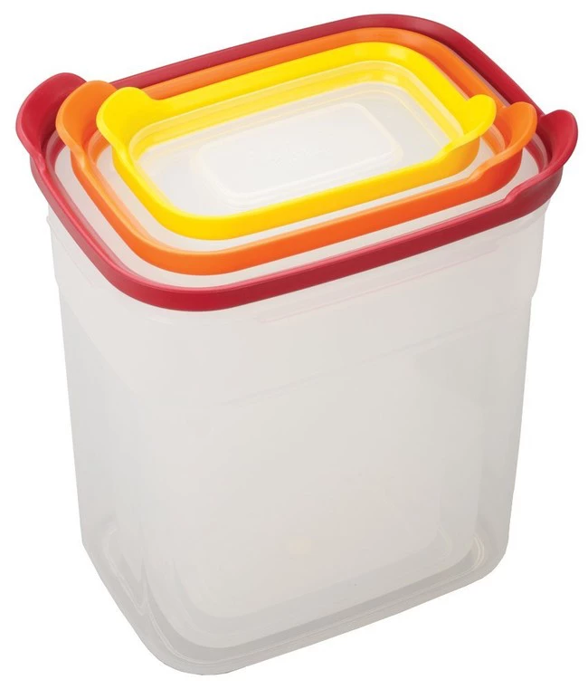 Una de las claves del éxito de Joseph Joseph es el diseño inteligente y práctico. Estos tres contenedores para comida tienen un diseño que ahorra espacio combinando perfectamente las bases y las tapas de los envases en el espacio que ocuparía uno solo. En la cocina de nuestro hogar tenemos un espacio limitado y Joseph Joseph nos ayuda a utilizarlo eficientemente.