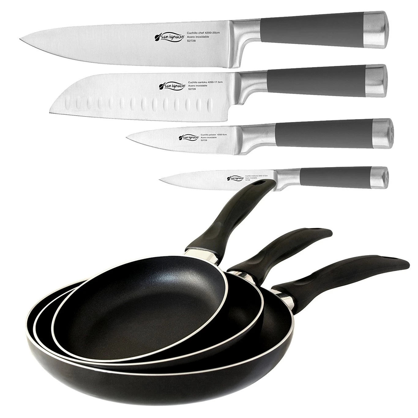 Si quieres aprovechar una buena oferta de cocina, quizás te interese el juego de 3 sartenes de la marca San Ignacio más un juego de utensilios que han rebajado en Amazon de 90,99€ a sólo 37,21€ y los gastos de envío gratuitos.