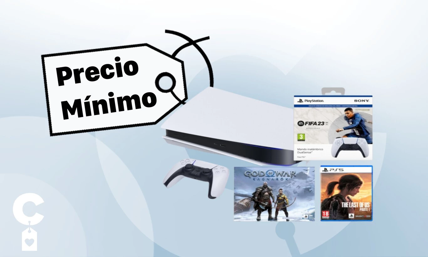 Uno de los más completos es el que ofrece Carrefour que incluye PS5 edición estándar, dos mandos Dual Sense y tres de los mejores juegos del año. Todo ello, a un precio imbatible de 773,95 euros (te ahorras 50 euros).