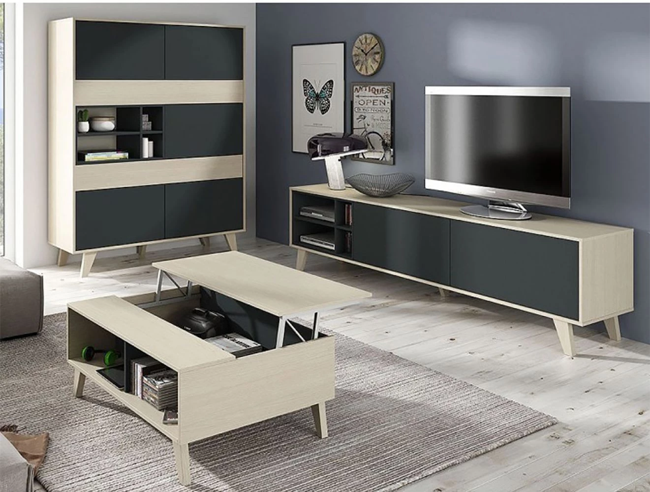 Mueble de comedor salon TV Roble y Gris Oscuro