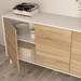 El aparador bufé de tres puertas, en blanco brillo y roble canadian tiene unas medidas que permiten una gran capacidad de almacenaje, 154x75x41 centímetros y encajaría perfectamente tanto en el salón como en el recibidor, como mueble de entrada.