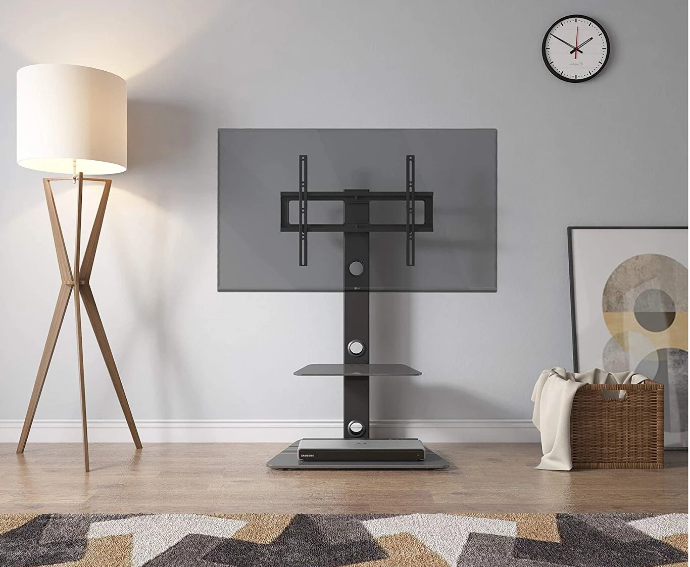 Adecuado para pantallas de TV de 30 a 65 pulgadas y con una capacidad de carga máxima de 40 kg, este soporte para tele es una opción realmente barata para colocar una televisión en nuestro hogar. Giratorio y de altura ajustable, este soporte a la izquierda y a la derecha 20 grados para proporcionar un amplio ángulo de visión desde diferentes zonas de la estancia. La altura también se puede ajustar en dos niveles diferentes.