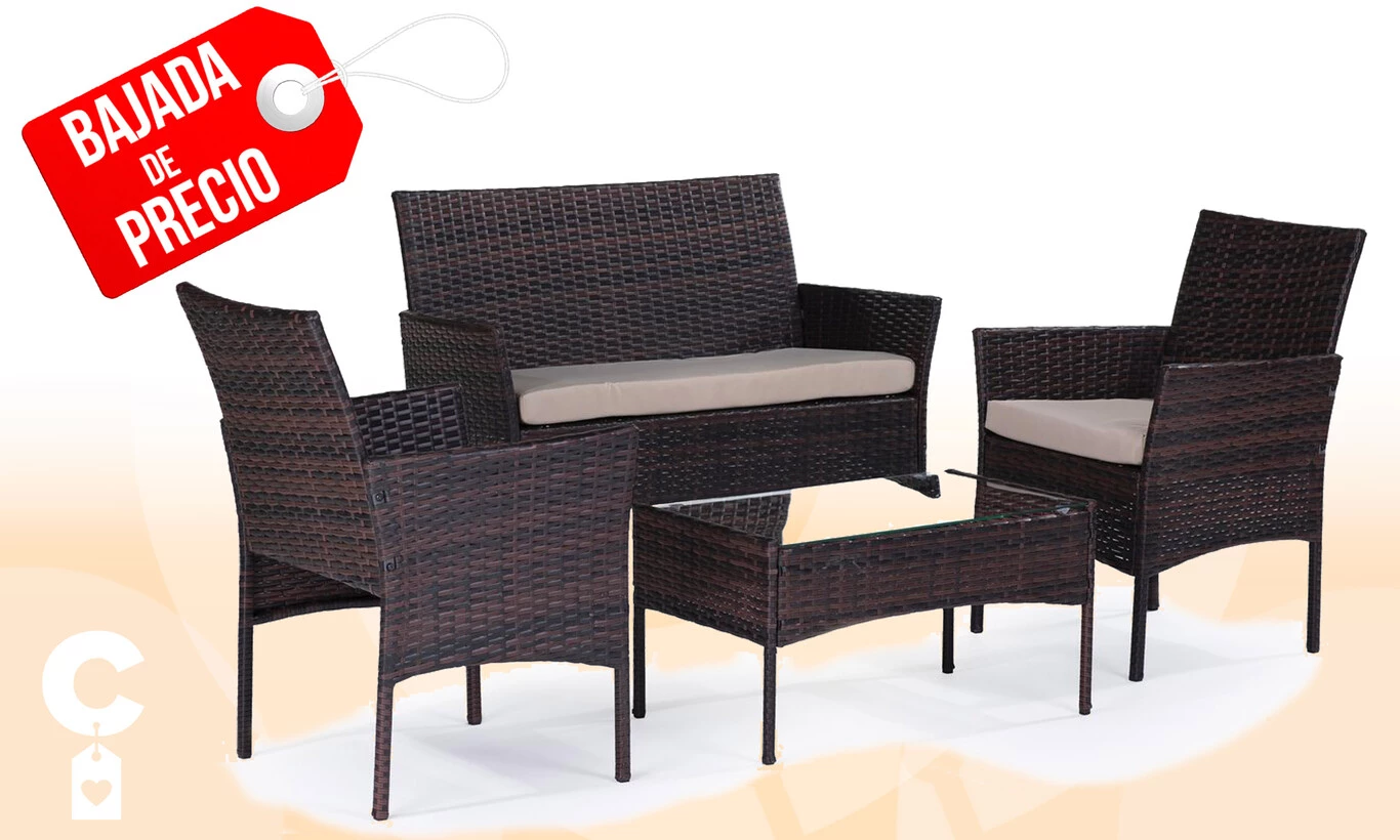 Si ha llegado la hora de que que renueves tu mobiliario de jardín o terraza quizás te interese echarle una mirada a este set de 4 piezas de muebles de exterior que hoy puedes encontrar con una tremenda rebaja en venta exclusiva en la tienda online de Carrefour, y que puedes conseguir con un 42% de descuento sobre su PVP por 191€ con envío gratis incluido (antes por 326 euros).
