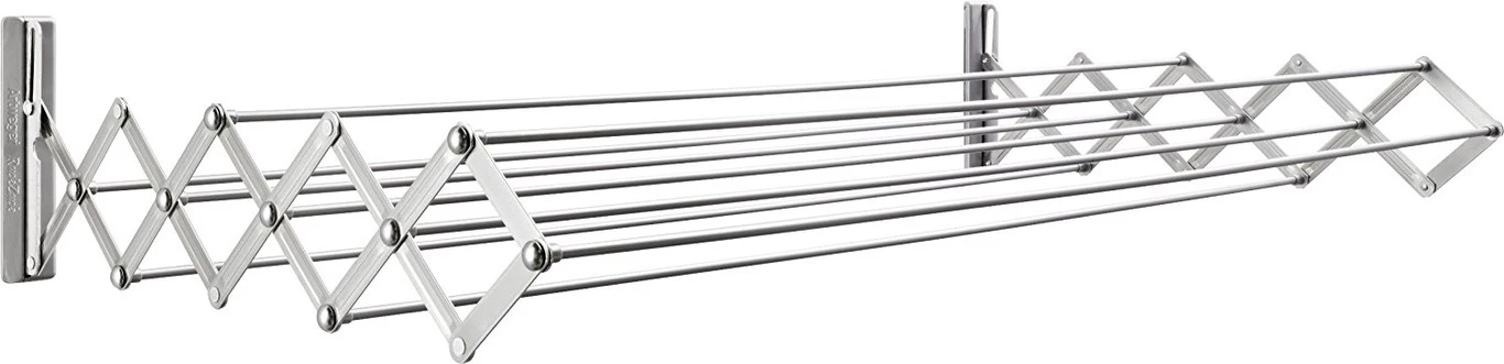 Este completo tendedor de pared de ocho varillas de 120 cm de longitud , por lo que la longitud de secado es de más de 10 metros. Soporta hasta 20 kilos de peso y es apto para interiores y exteriores, ya que cuenta con varillas de acero recubierto de plástico con laterales de aluminio que lo hacen lo suficientemente elegante como para tenerlo en interiores pero a la vez lo suficientemente resistente como para colocarlo en un exterior.