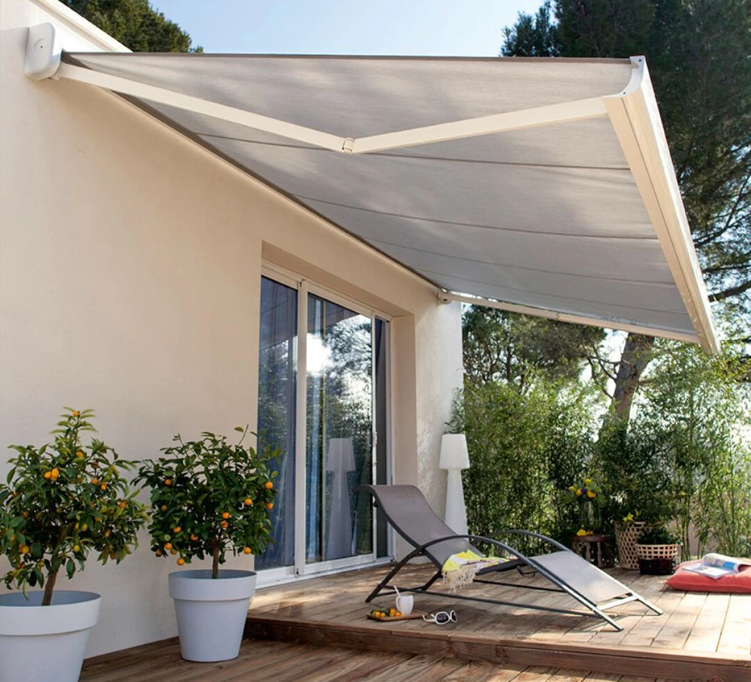 Toldo Zefir brazo extensible motorizado con cofre gris tela gris 3.95x3 m