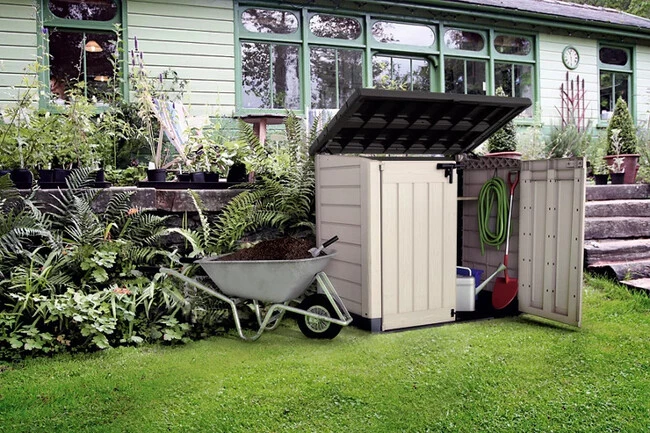 Mantener el jardín ordenado a veces no es tan fácil como pensamos. Es por eso por lo que tener un arcón de exterior puede ser una de las mejores opciones para mantener el orden en tu jardín todo el año y no encontrar rastrillos o palas tirados por el suelo. En Leroy Merlin saben que es muy importante mantener un orden en el jardín, de ahí que cuente con un amplio catálogo de arcones de exterior de todos los precios y tamaños para que puedas escoger, como es el caso de este arcón de resina Conquer Shed que se encuentra a un precio rebajado, en concreto 179 euros.
