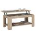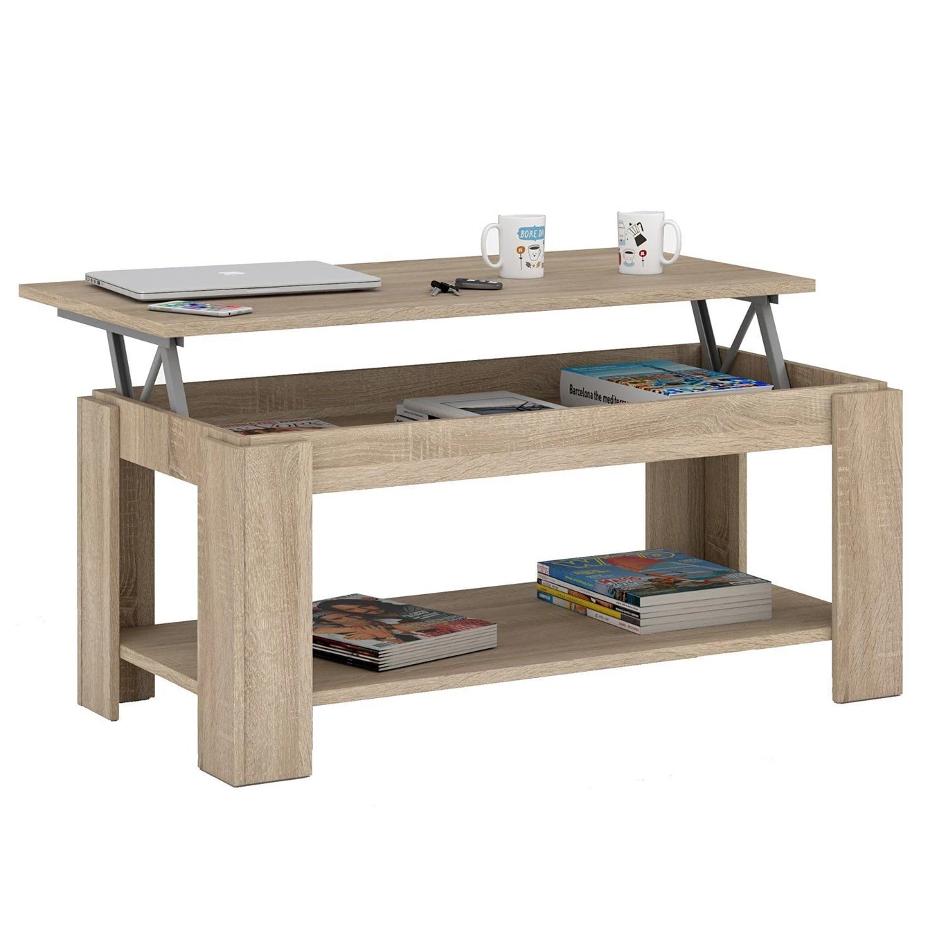 Como podemos ver en la imagen superior, la mesa de centro elevable ambit es una práctica mesa de centro de líneas simples elaborada en melamina de alta calidad con acabado en roble canadian. Por su precio resulta ideal para tener una mesa de centro económica pero que a la vez cuente con comodidades como el tablero elevable que nos permite comer o trabajar a una altura más cómoda.