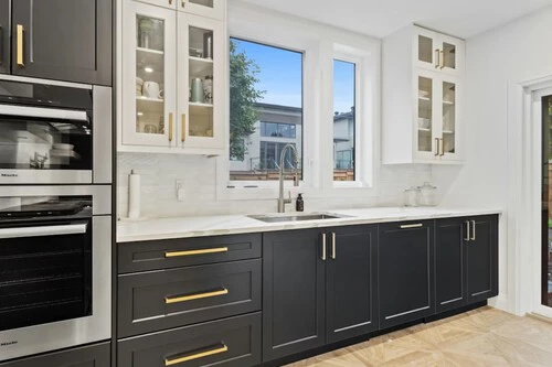 Dispone de tres cajones centrales ideales para cubiertos, especias u otros objetos de pequeño tamaño y dos armarios en los laterales con estantes que son perfectos para guardar las ollas, las sartenes o pequeños electrodomésticos.