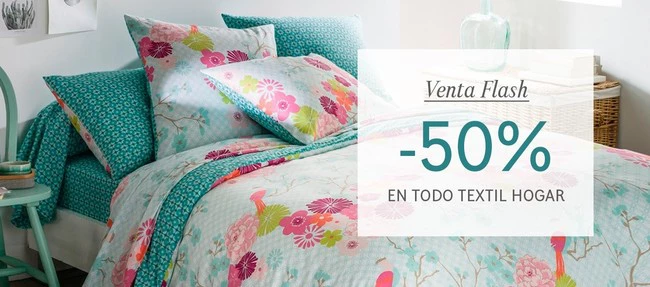 Con esta oferta podemos ahorrarnos un 50% en ropa de cama, textil para el baño, en la sección de cortinas, visillos y estores, en mantelería, etc. No tenemos que hacer nada en especial: sólo hacer nuestras compras y automáticamente recibiremos un descuento del 50%. Esta oferta es válida hasta el 21 de febrero.
