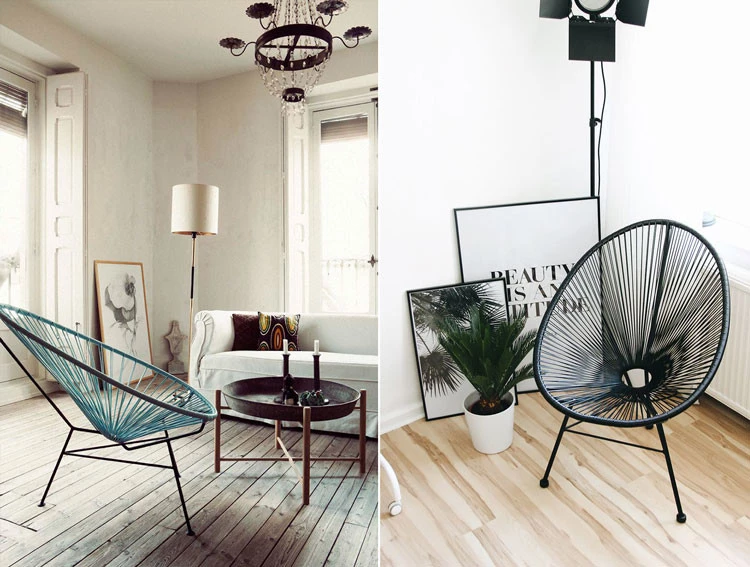 Este modelo de silla es plena tendencia en decoración, además de ser muy cómoda gracias a que se adapta al cuerpo a la perfección. Están hechas a mano por artesanos de Acapulco inspiradas en un diseño popular en los años 50 que ahora vuelve para quedarse y dar estilo a nuestra terraza, jardín o salón, porque estas sillas son perfecta tanto para exteriores como interior.