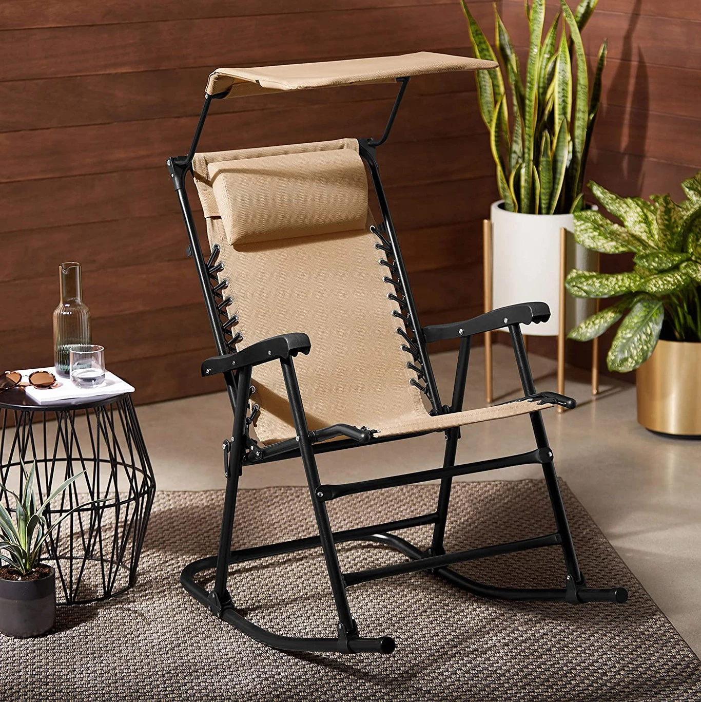 Perteneciente a la marca propia de Amazon, AmazonBasics estamos ante una silla plegable para porches, patios o para llevar de viaje que se abate fácilmente para guardarla o trasladarla. Fabricada en acero y lona para facilitar la transpiración y que sea más fresca, incluye reposacabezas acolchado y toldo retráctil para que no nos falte de nada.