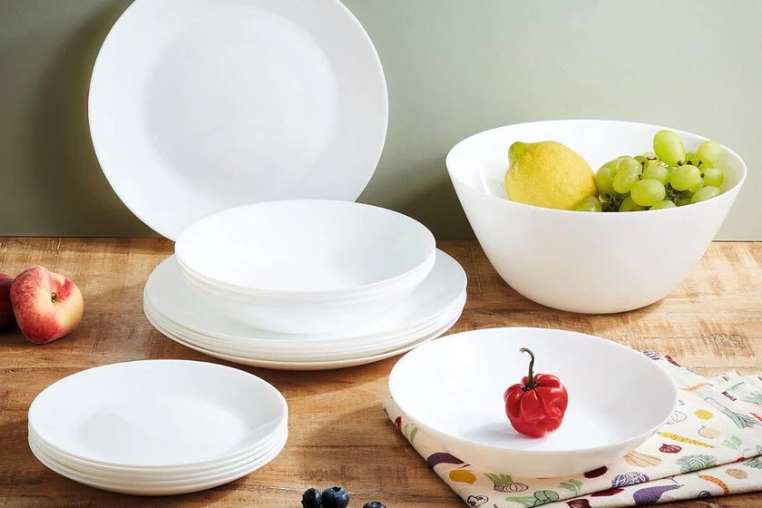 Esta vajilla Zelie de la marca Luminarc cuenta con tanto estilo como resistencia ofrece: está fabricada en vidrio opal blanco, un material que se caracteriza por su gran durabilidad, resistencia a desportillarse y a la rotura (muy parecidos a los famosísimos Duralex, que duran y duran). Podrás usarlos sin miedo en el microondas y luego limpiarlos en el lavavajillas, por eso son ideales para uso diario.