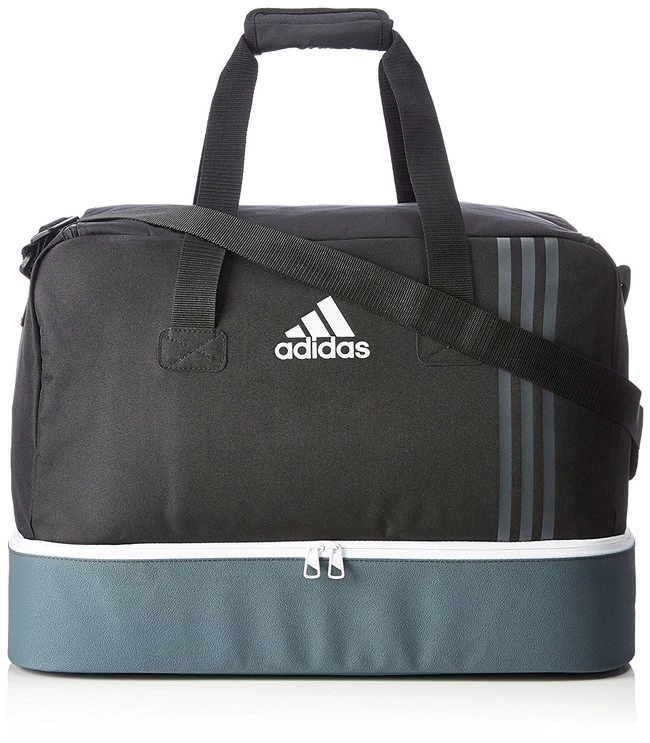 Diseñada ya fabricada por la firma deportiva germana Adidas, esta bolsa de tamaño medio tiene unas medidas de 28 x 55 x 37 cm, un tamaño ideal para llevar la ropa de entrenamiento y unas botas de fútbol. Presenta un compartimento superior para tener la equipación siempre a mano y otro inferior para poder guardar por separado las botas de fútbol y que no manchen el resto de pertenencias. Cuenta con asas acolchadas y con una correa para el hombro para llevarla como nos resulte más cómodo. Viene con tacos en la parte inferior para aislarla mejor de la humedad del suelo. Está fabricada en poliester.