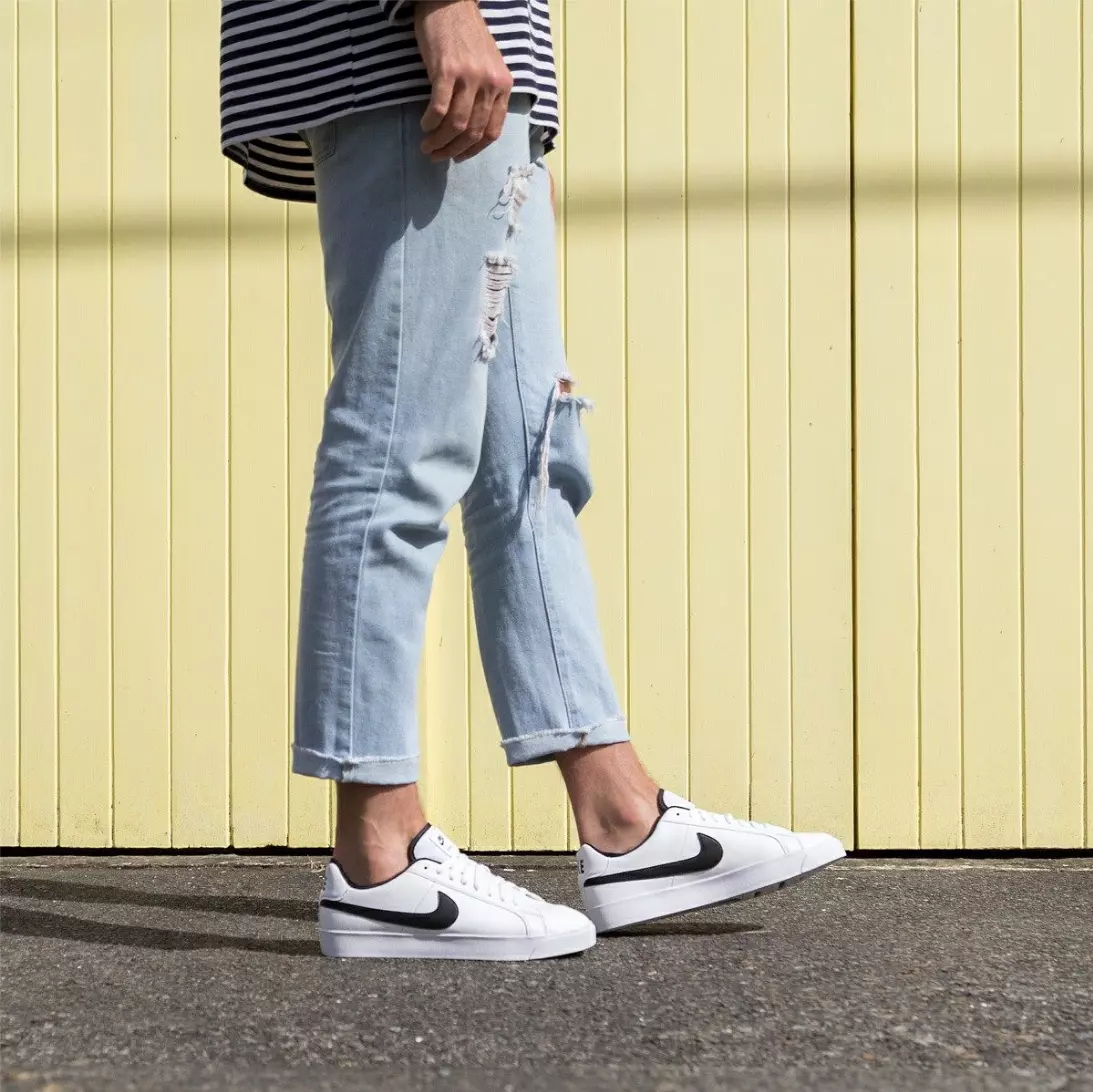 - En color rosa y en los números que van desde 37,5 al 41, tenemos estas zapatillas tipo tenis Nike modelo Royale por 39,99 euros. Con un diseño clásico, que incluye el logo de la marca en el lateral, cierre de cordones y suela de goma en color blanco.