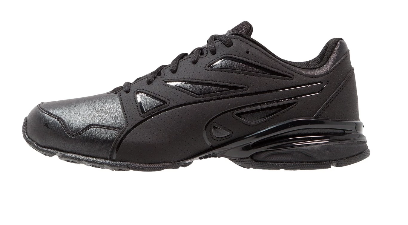 Estas zapatillas diseñadas y fabricadas por la firma alemana Puma en piel sintética cuentan con un uniforme color negro en el que sólo destacan algunos brillos en los laterales y en la suela.