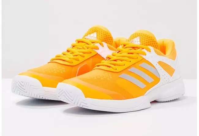 Estas llamativas zapatillas diseñadas y fabricadas por Adidas en malla y piel sintética están especialmente pensadas para la práctica de tennis y pádel, aunque pueden servirnos para una gran variedad de deportes. Cuenta con aireaciones situadas en la parte frontal de la zapatilla para permitir la salida del sudor y la vaporación. El empeine carece de costuras para mayor confort. Para hacernos una idea de su ligereza, la talla 38 2/3 cuesta sólo 161 gramos.