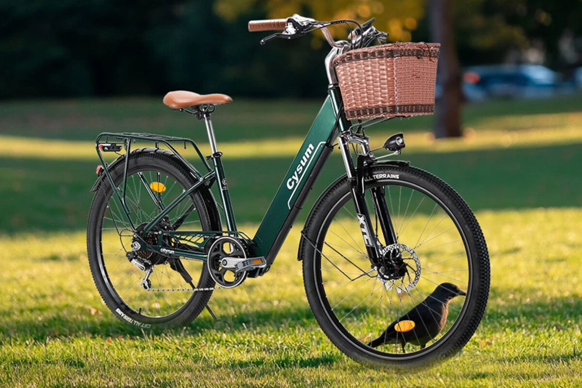 Bicicleta eléctrica para viajeros Cysum Cityrun de 26", bicicleta eléctrica urbana, bicicleta de perfil bajo para mujer, batería de litio de 36 V y 10 Ah, alcance de 70-90 km