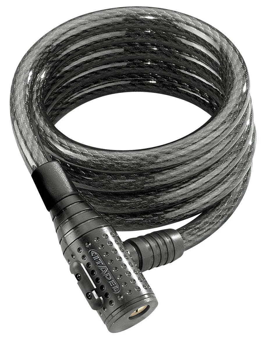 Este robusto candado de cable de sirga de la marca Citadel cuenta con un cierre automático que se activa sin necesidad de cerrar el candado cada vez que lo usamos. La sirga es de 12 milímetros de grosor con una longitud de 189 centímetros, más que suficiente para atar la bicicleta a un poste o farola agarrando de laso las ruedas delantera y trasera a la vez o incluso el sillín (si tenemos la suerte de poder engancharlo en algún punto). Es un candado potente pero no infalible: si vienen con una cizalla de gran tamaño, los ladrones tendrán éxito. Pero es cómodo de llevar y ligero, y mientras nuestra bici no duerma en la calle a la vista de los cacos, parece suficiente. Si la vamos a dejar en sitios poco transitados a según que horas... Mejor los que tienen forma de U o uno de tipo pitón: eso sí, son más caros y mucho más incómodos de llevar.