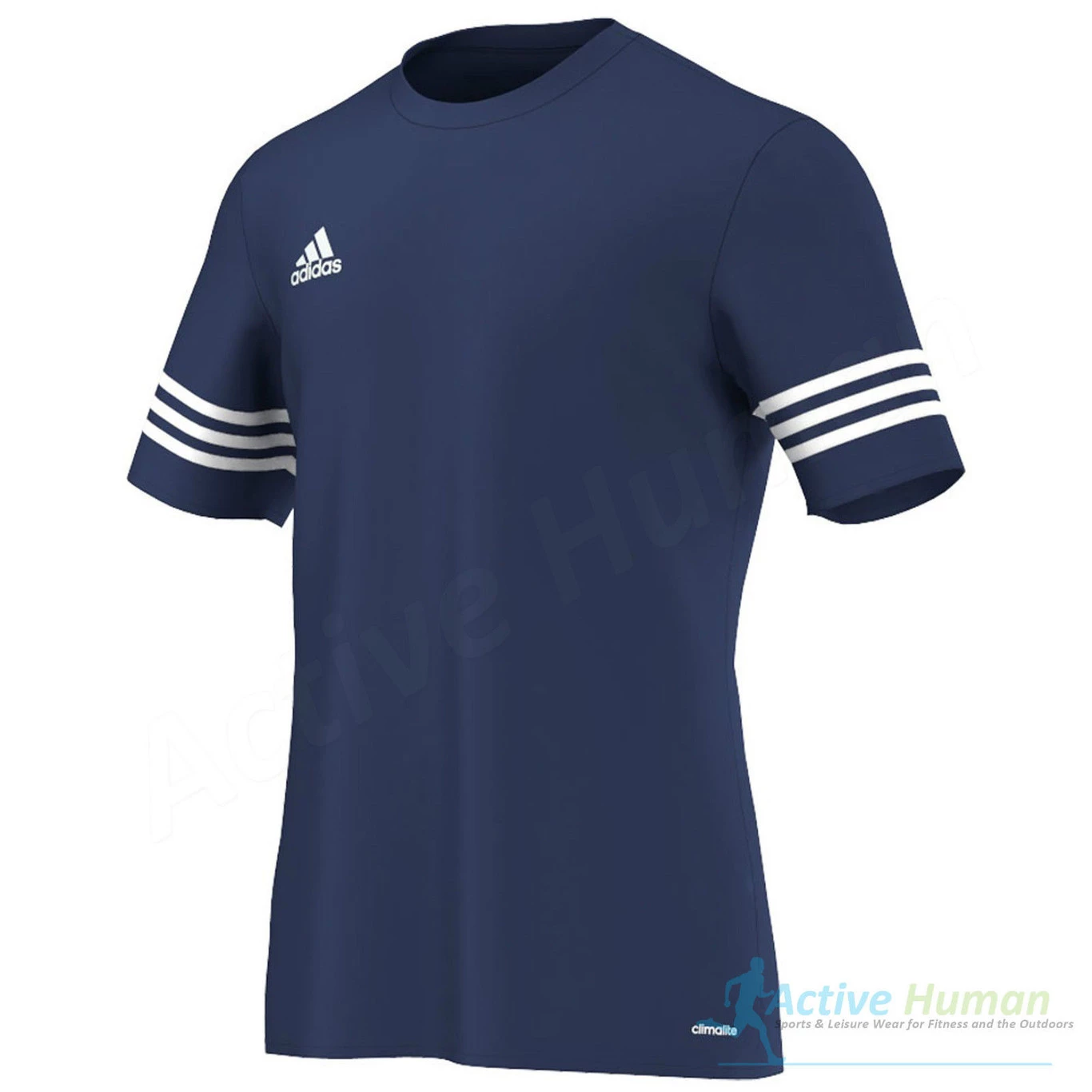 Estas camisetas deportivas de la marca alemana Adidas son ideales para el entrenamiento de diversos deportes como fútbol, fútbol sala, pádel, etc. Gracias a su material Climalite evita la humedad de la piel con su sistema de transporte de humedad que absorbe y elimina el sudor del cuerpo. Como se puede ver en la imagen superior cuenta con tres rayas en las mangas y logotipo de Adidas en el pecho.