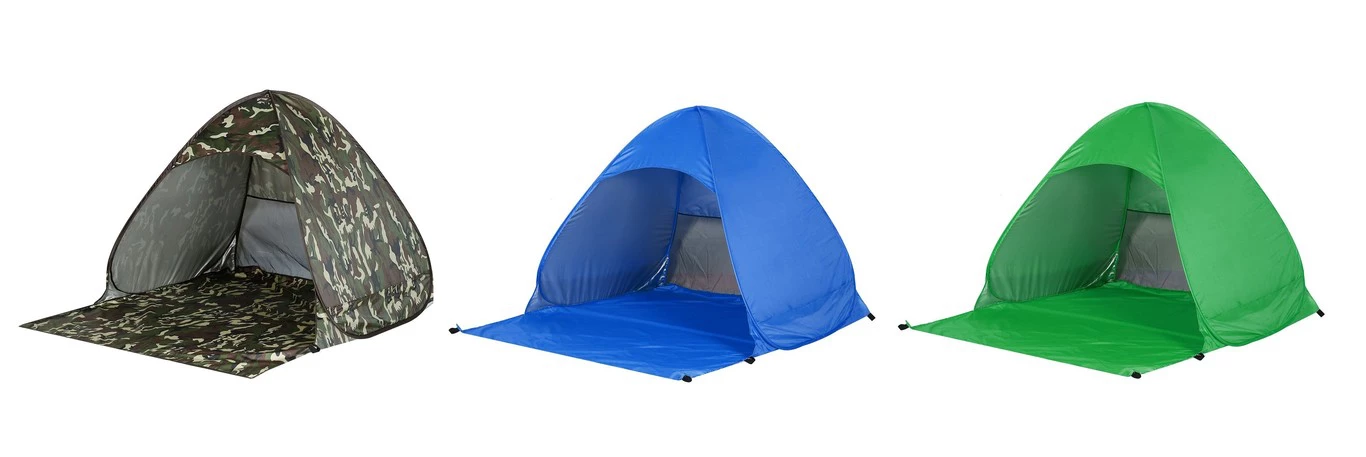 Se trata de una tienda de campaña de apertura fácil y montado automático para la playa o similar. Esta fabricada en poliéster de tafetán y recubierta en plata para protegernos de las quemaduras solares. Su estructura es bastante fuerte y viene con piquetas para anclarla al suelo, para evitar que salga volando en caso de hacer mucho aire.