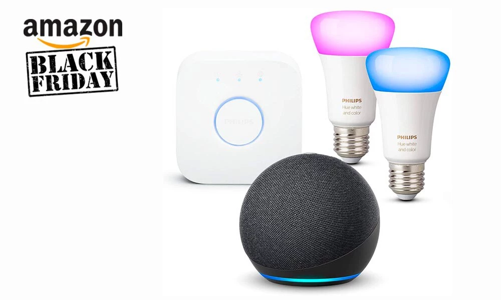 Desde luego, aprovechar el Black Friday de Amazon para hacernos con alguno de sus dispositivos Echo es todo un acierto. Si además aprovechamos para completar la iluminación inteligente de nuestro hogar con un pack como este, compuesto por dos bombillas Philips Hue, el puente correspondiente y el Echo Dot de 4ª generación con el que controlarlas por 109,99 euros, tendremos sin duda una jugada ganadora.