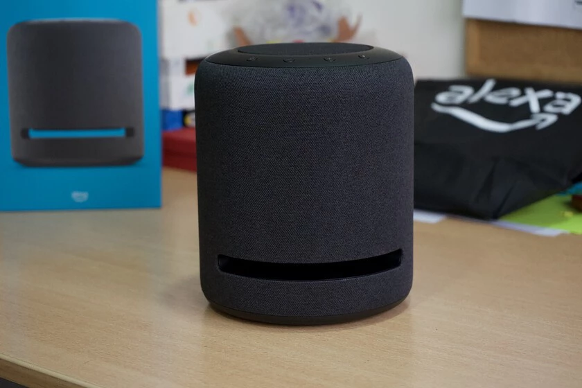 Este altavoz Echo Studio tiene un diseño más grande y en su interior tiene cinco altavoces que adaptan el sonido en función de la estancia, gracias a sus siete micrófonos que se encuentran en la zona superior.