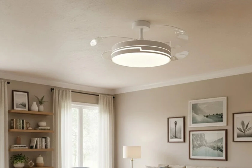 Las aspas retráctiles se guardan cuando no están en funcionamiento para ocupar menos espacio y no ensuciarse siguiendo un diseño en blanco minimalista que se adapta a todos los hogares. A través del mando a distancia puedes controlar las velocidades, temporizador o las diferentes intensidades de luz en la lámpara LED de 36W.