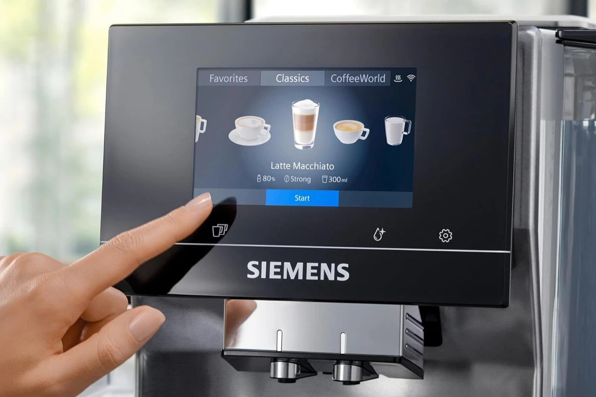 Otra característica a destacar de esta cafetera es su pantalla táctil fácil de usar, con la que conseguiremos preparar hasta dos cafés a la vez con solo apretar un botón. Asimismo, podemos guardar hasta 10 bebidas en la memoria y tenemos la posibilidad de controlarla a través de nuestro smartphone con la app Home Connect.