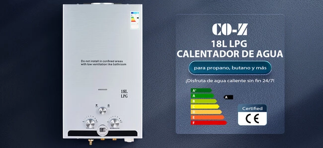 CO-Z 18L Calentador de Agua Butano Calentador de Agua LPG Instantáneo, Certificado CE, Calentador de Agua de Gas Licuado de Petróleo sin Tanque