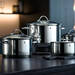WMF Provence Plus - Batería de Cocina 5 Piezas, Acero Inoxidable Apto para Inducción, 1 Cacerola Baja de 20 cm, 3 Cacerolas Altas de 16 cm, 20 cm y 24 cm, 1 Cazo 16 cm con 4 Tapas de Cristal