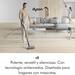 Esta aspiradora vertical sin cables funciona con un motor digital que gira hasta 110.000 rpm con una potencia de hasta 130 vatios de aire y 15 ciclones para conseguir un 10% más de succión que otros modelos. Integra una batería de iones de litio de seis celdas de alta durabilidad con una autonomía de hasta cuarenta minutos y sin efecto memoria.