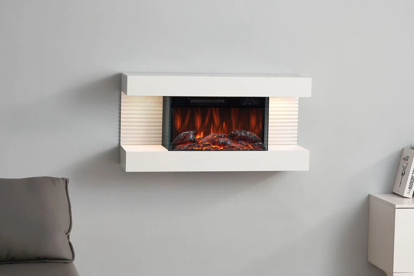 Chimenea Eléctrica Liz - Chimenea Eléctrica De Pared Con Calefacción, Efecto De Llama 3d, Luz Ambiental Led, Control Remoto - Blanco - Kaminio