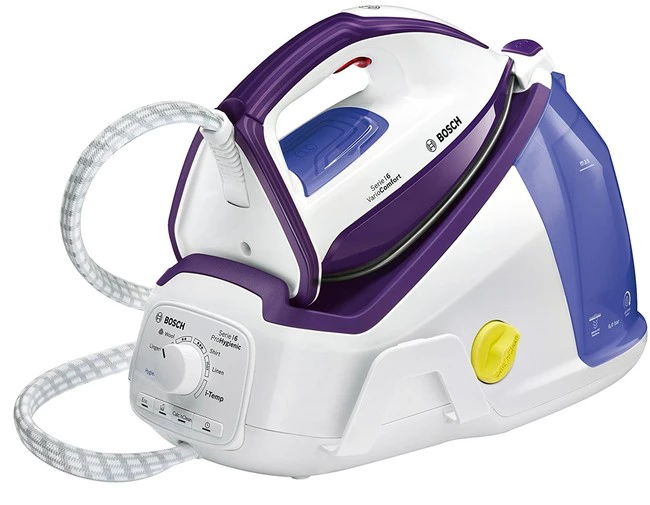 Este centro de planchado tiene una potencia de 2.400 W y es capaz de conseguir una presión de 6 bares, lo que le permite emitir hasta 400 gramos de supervapor. Cuenta con los últimos avances de Bosch en planchado, como la tecnología HygienicSteam que elimina hasta el 99,9% de bacterias presentes en la ropa o el programa VarioComfort, que se compone de varios programas individuales de planchado ajustados a diversos tejidos para un planchado más cómodo e intuitivo, tal y como podemos ver en la siguiente imagen: