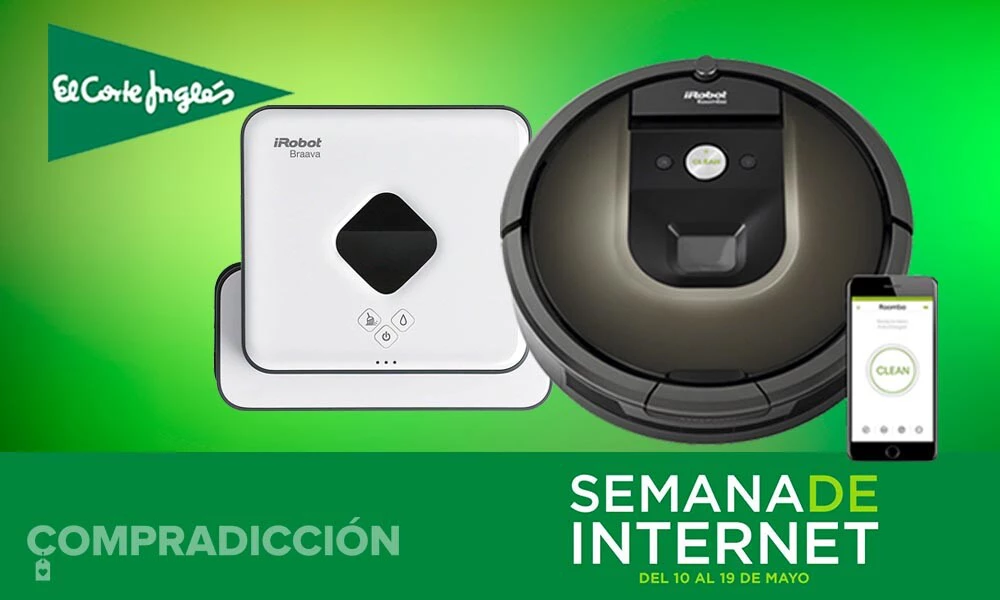 Aunque no es el modelo más moderno de la marca, sí que se trata de uno de gama alta que, en la Semana de Internet de El Corte Inglés te va a salir más barato que en ninguna otra tienda y además te va a venir con regalo si te das prisa. El robot aspirador Roomba 980 te sale ahora por 489 euros y si eres de los 250 primeros en pedirlo, te lo llevas con el robot friegasuelos Braava 390T de regalo