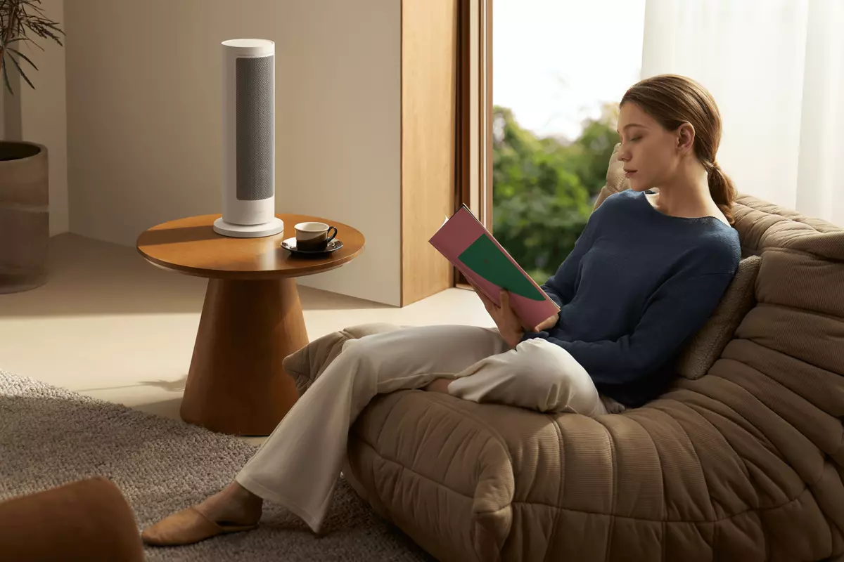 El sistema inteligente para controlar la temperatura la mantiene ajustando de manera dinámica la potencia, lo que disminuye el desperdicio de energía por el sobrecalentamiento y las variaciones térmicas. El sistema de oscilación reparte el calor por toda la estancia de manera homogénea debido a la rejilla microporosa que aporta una brisa suave. A través de la app en el móvil puedes controlar desde cualquier parte el encendido, temperatura, modo y programación además de vincularlo con tu sistema de voz.