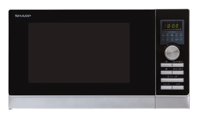 Este Sharp R842 tiene las funciones de horno, microondas y grill, además de un magnífico aspecto gracias a su terminación en acero inoxidable.