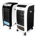 Se trata de un climatizador de 70W de potencia que funciona mediante evaporación de agua. Es decir, cuenta con un tanque, en el que pondremos agua o hielo, que sirve para enfriar el aire de su ventilador. Sencillo pero eficaz.