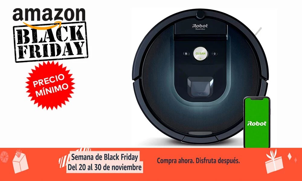 Amazon sigue ofreciéndonos precios mínimos en los robots de limpieza de iRobot por el Black Friday. Hoy de hecho es el turno del Roomba 981, al que nunca habíamos visto tan barato como los 379 euros que cuesta hasta la medianoche.